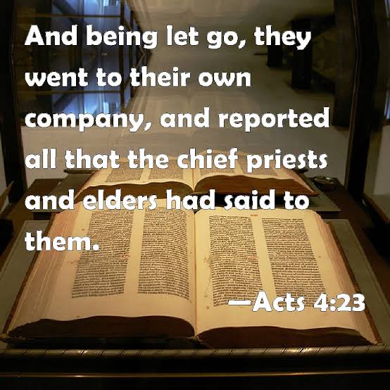 ANCHOR SCRIPTURE: “And being let go, they went to their own company, and reported all that the chief priests and elders had said unto them” (Acts 4:23)